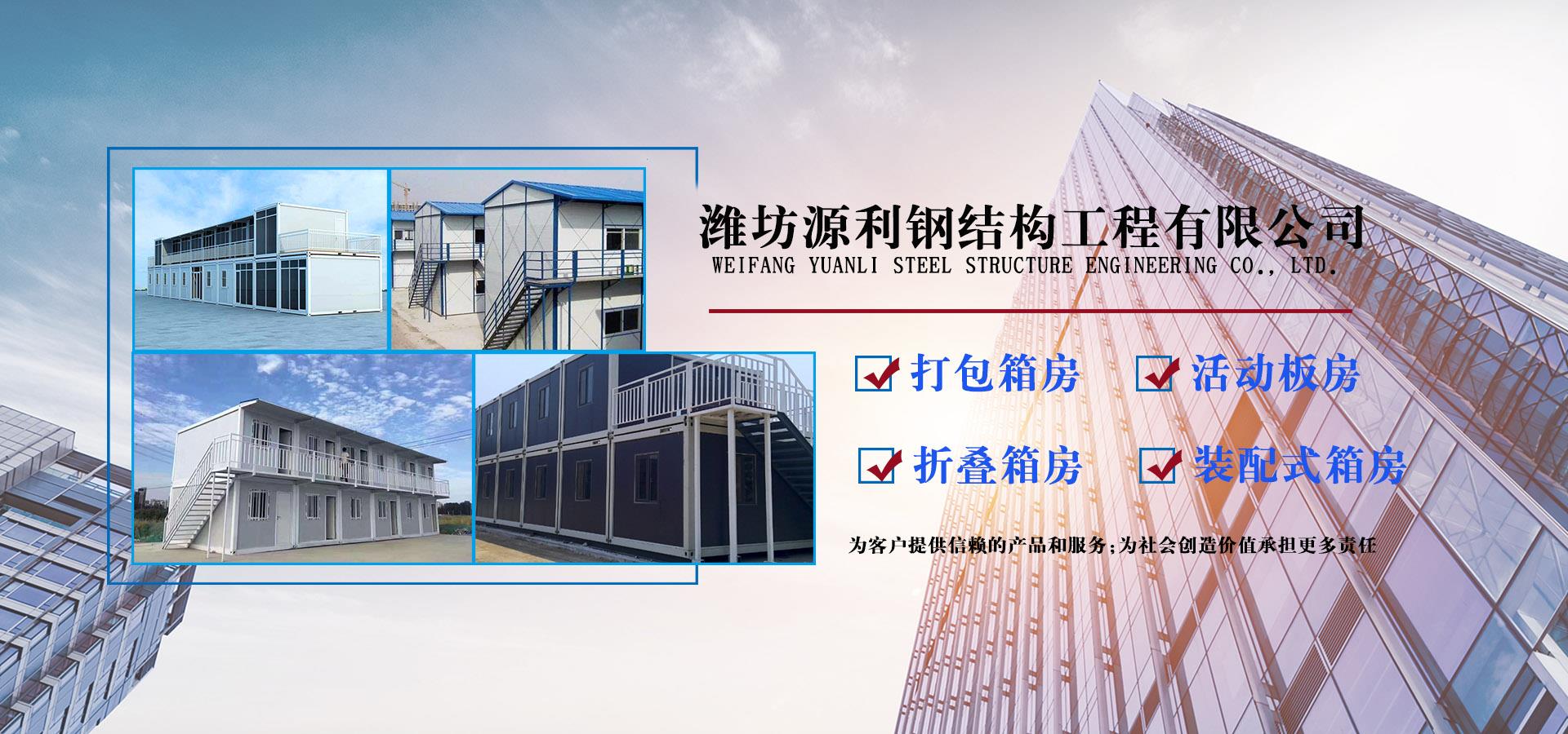 濰坊源利鋼結(jié)構(gòu)工程有限公司成立于2015年,是一家從事活動房屋,鋼結(jié)構(gòu)設(shè)計、制作、安裝為一體的公司。公司坐落于風景秀麗的藍寶石之鄉(xiāng)昌樂開發(fā)區(qū),占地約60畝,年加工生產(chǎn)能力到40萬平米,現(xiàn)已發(fā)展成本地較大的鋼結(jié)構(gòu)企業(yè),同時也已跨入集成房屋研發(fā)、推廣企業(yè)行列。公司配備了全套的箱房流水線生產(chǎn)設(shè)備,包含了全自動冷彎成型設(shè)備、流水自動涂裝線、沖壓型材生產(chǎn)線以及全套的配套設(shè)備,標準化、模具化生產(chǎn)加工,年生產(chǎn)5000套打包箱,產(chǎn)品保障。 公司主要產(chǎn)品有:鋼結(jié)構(gòu)工程加工、制作、安裝;各類活動板房、打包箱房、裝配式箱房、折疊箱房、圍擋、料棚、異型H型鋼、屋面板、墻面板、樓承板,C型鋼,Z型鋼;馬路隔離護欄等相關(guān)產(chǎn)品。